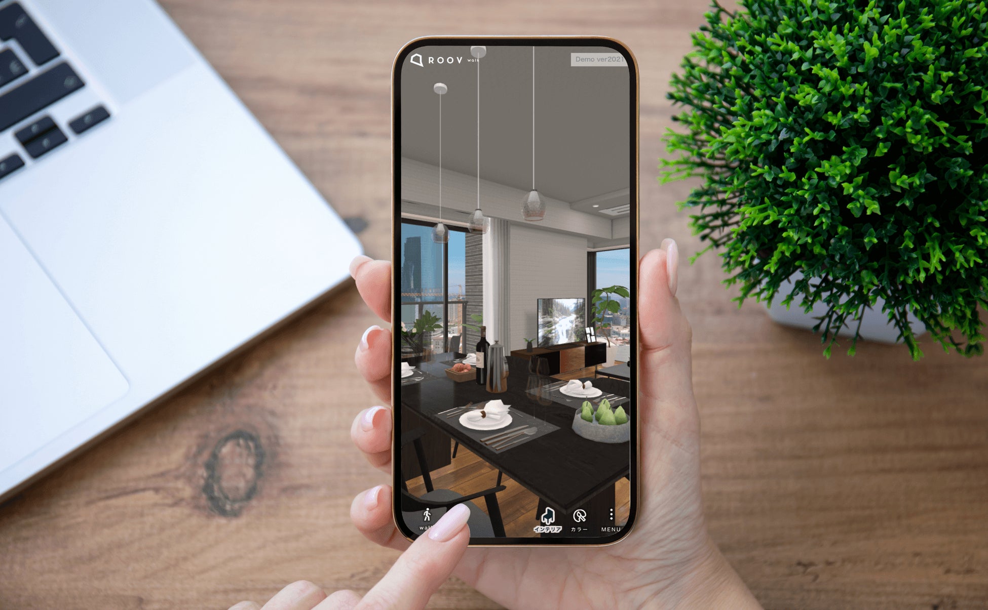 『ROOV』は、アプリやソフトウエアをダウンロードすることなく、手元のスマートフォンやパソコンのインターネットブラウザで「いつでも」「どこでも」「かんたんに」3DCGの空間を自由に動き回り、様々なシミュレーションで住み方のイメージを確認できるクラウド型VR内覧システムを基軸とした、住宅3Dコミュニケーションのプラットフォームです。
