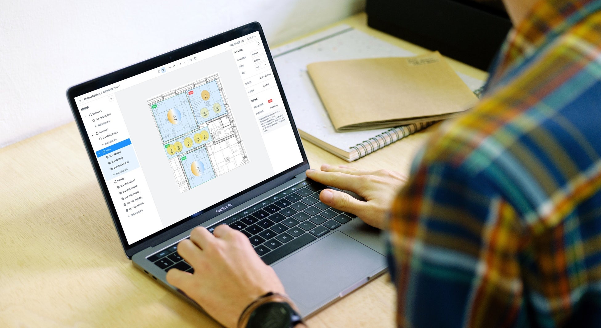 「従来の照明計画は、メーカーのカタログを捲って、検索にキーワードを 入力して探すしかなかったので大変でした。Chubicはのように、平面図ベースで器具を試すことができて、代替器具もサクサク変更できるようなツールは他にないと思います。」