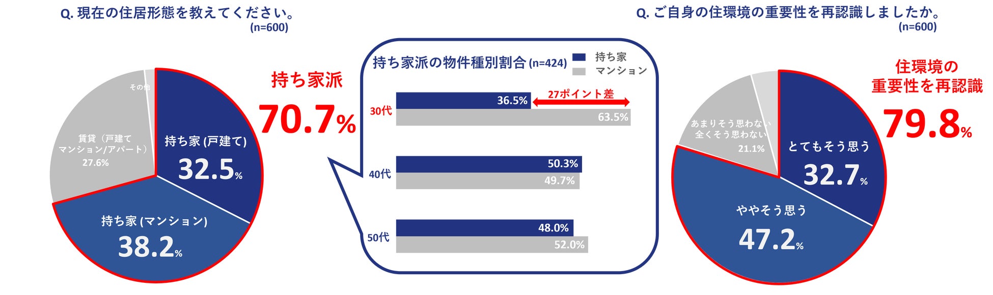 ① 都内の高所得世帯の持ち家率70.7%、30代はマンション派が多い傾向。また、コロナなどの社会的背景から「住環境の大切さに気づいた人」は約8割。