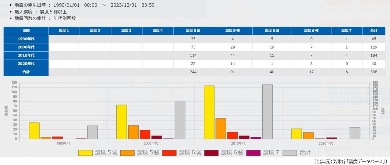 また、気象庁の「震度データベース」によると、1990年~2023年の間に震度5弱以上の地震は398回も起こっています。平均すると1年間で11.7回も震度5弱以上の地震が起こっていることになります。日本に住んでいる以上、どこに住んでいても地震のリスクがあるため、耐震性の高い家を作る必要があると思います。