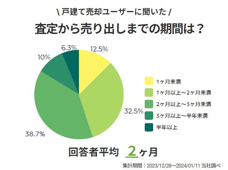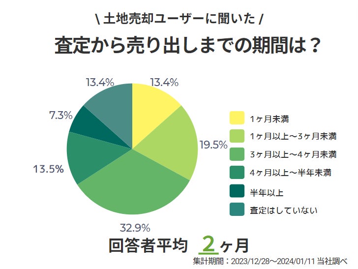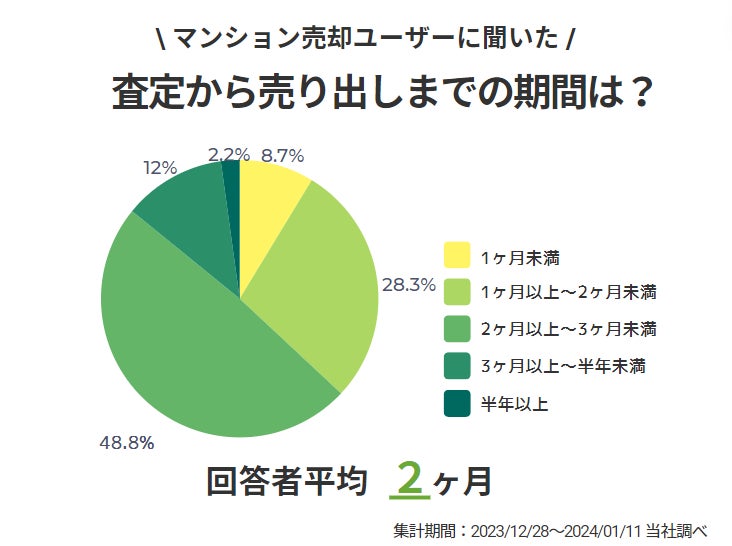 調査の結果、不動産売却において、査定から売り出しまでにかかった期間は、マンション・戸建て・土地ともに平均して2ヶ月であることがわかりました。