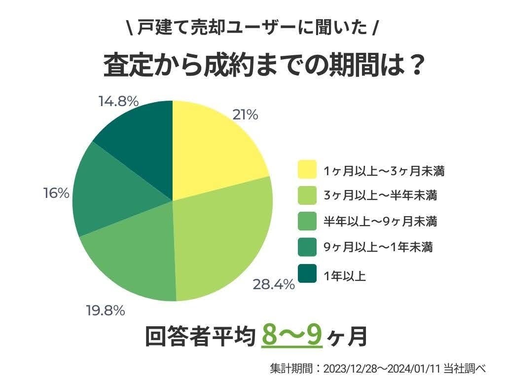 また、査定から成約までにかかった期間は3ヶ月以上~半年未満(23人)が最多で、回答者の平均は8〜9ヶ月でした。