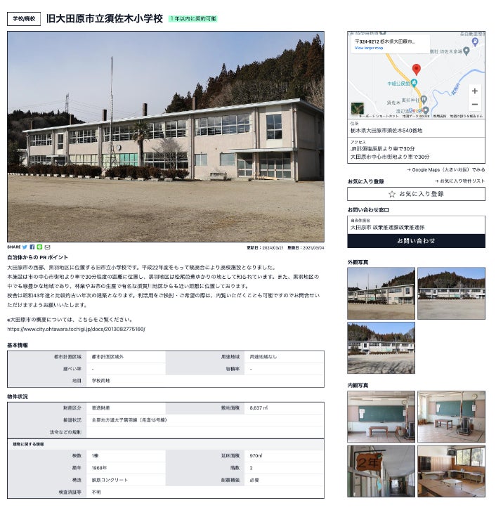 全国的に人口減少・財政難などにより低未利用となった公共不動産は増え続けています。その活用や譲渡等に向けての情報は、これまで全国1700強の自治体が、それぞれ独自のフォーマットで、各市町村のHPに掲載されているのが実情でした。