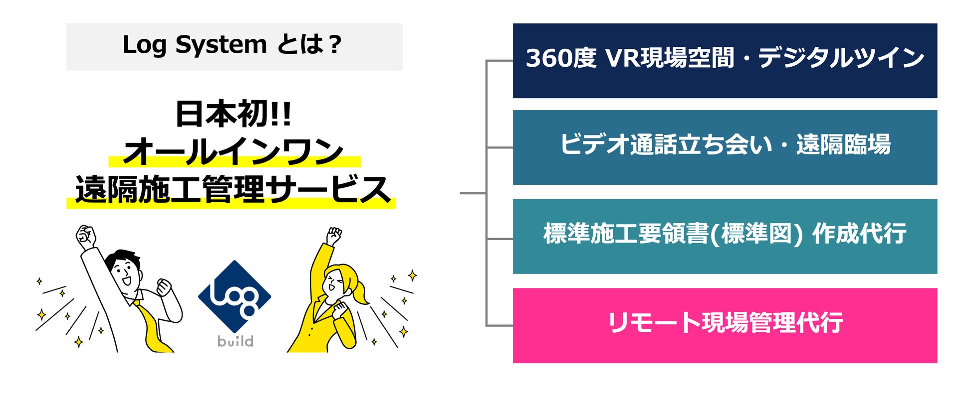 遠隔で「品質管理・安全管理・進捗管理」が可能なリモート施工管理プラットフォーム「Log System」は、遠隔施工管理を実現するためのサービスをオールインワンで提供。