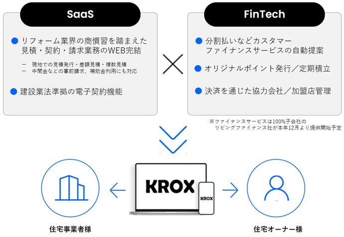 出典:PR TIMES,リフォームビジネスに”DXと金融を実装する”SaaS×Fintechの新サービス「KROX」を提供開始,https://prtimes.jp/main/html/rd/p/000000065.000048067.html,参照日2024-08-09