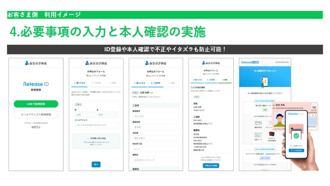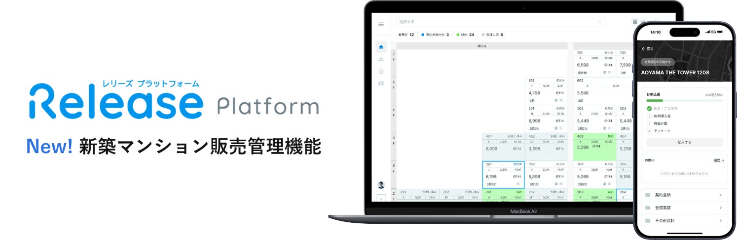 なお、本サービスはあなぶき興産と業務提携する GOGEN株式会社(本社:東京都港区、代表取締役CEO:和田浩明、以下:GOGEN)が開発・提供する不動産売買支援ハブ「レリーズプラットフォーム(以下:レリーズ)」を活用し、一部必要な新機能を共同開発のうえ、提供するものです。