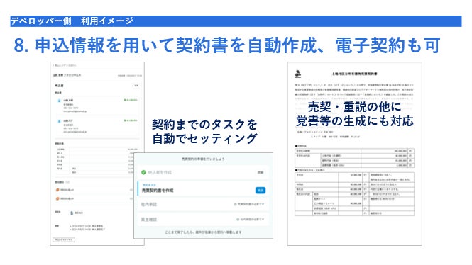 も、本取組の目的です。具体的には、申込情報を活用した各種契約書面の自動作成や、販売状況の組