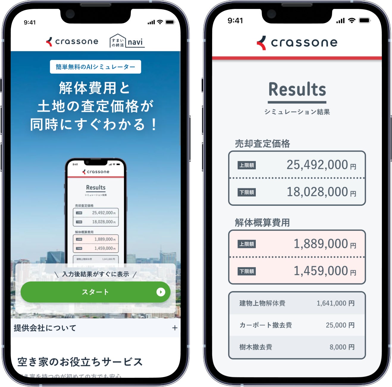 スマートフォン等から土地建物の面積や最寄り駅、接する道の幅などの条件を入力することで、「解体費用」と解体後の「土地売却査定価格」の概算額を手軽に無料で把握することができ、「解体費用がどのくらいか分からない」といった情報不足の解消や、解体後の土地売却の見通しが立たないために空き家の解体に踏み切れない所有者の意思決定の後押しを行います。概算費用を把握したうえで、具体的な見積もりを希望する場合は、工事会社の紹介を受けることもできます。