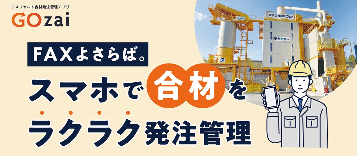 株式会社加藤工務店(本社:愛知県瀬戸市)は、合材発注等のDXを推進するWebアプリ「GOzai」をリリースしました。本アプリにより、予約・変更、履歴管理、各種書類のデジタル化が可能となり、従来FAXや電話で行われていたやり取りをWeb上で完結。施工業者や現場監督、運送会社にとって、よりスムーズで正確な発注管理を実現します。