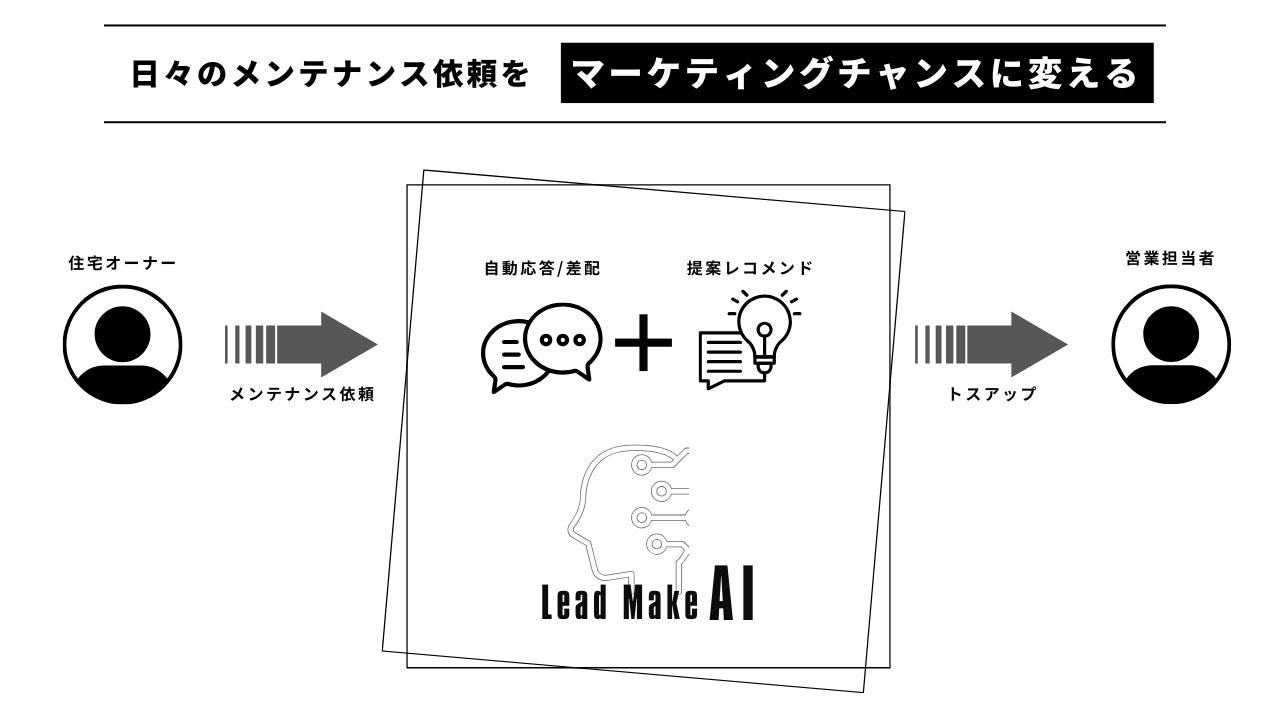 当社ではこうした課題を解決することを目指し、創業以来の住宅アフターサービス支援で蓄積したビックデータを基にした独自AIモデルによる先進AIエージェントサービス「Lead Make AI(リードメイクエーアイ)」の開発を進めてまいりました。