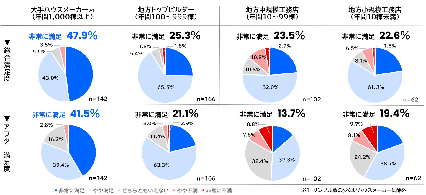 20歳代から60歳代の新築戸建て住宅購入者を対象に、当社が行った独自調査(※)では、住宅事業者のアフターサービスに関する満足度において大手ハウスメーカーと中小工務店の満足度に大きな乖離を認める結果となりました。