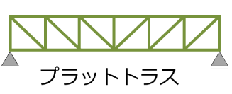 プラットトラスは、鉛直材と斜材を組み合わせて荷重を効率よく下部へ伝達する形式です。斜材が下方に向かって配置されるのが特徴で、橋梁や大スパン建築で多用されてきました。