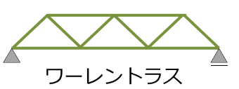 ワーレントラスは等辺三角形を連続させたシンプルな構造で、荷重を均等に分散できる点が最大の特徴です。部材が規則正しく配置されるため、設計や施工が比較的容易で、橋梁から屋根構造まで幅広く用いられています。