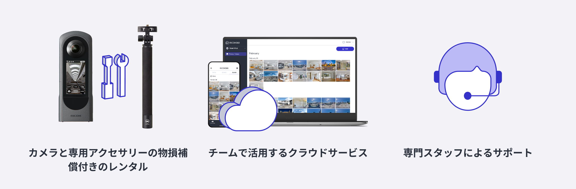 製品名:「RICOH360 ビジネスパッケージ タイプ S」 提供開始日:2025年10月23日 提供形態:アプリケーション+RICOH THETAとアクセサリーのレンタル(物損補償付き)+サポート一式