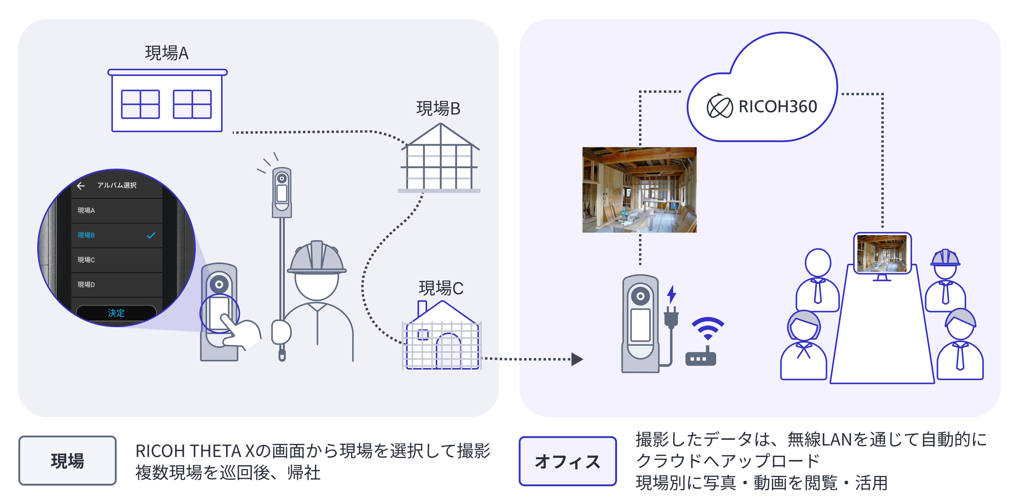 - 遠隔から現場名を設定できる「RICOH360(Web版)」