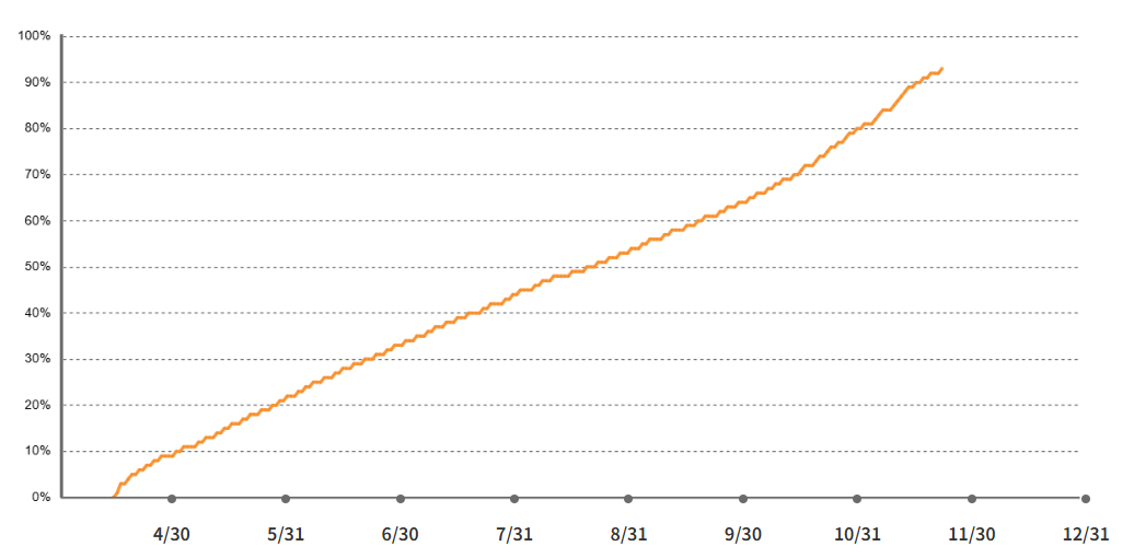 2025年11月17日時点で、予算に対する補助金申請額の割合が90%に達しました。補助金申請額が予算上限(100%)に達し次第、交付申請(予約を含む)の受付は終了となるため注意が必要です。