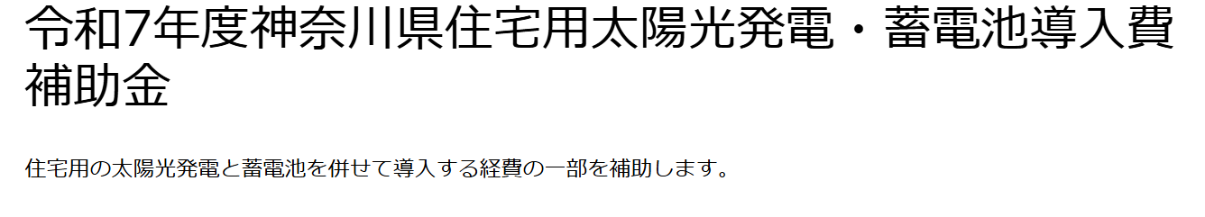 【参考】令和7年度神奈川県住宅用太陽光発電・蓄電池導入費補助金