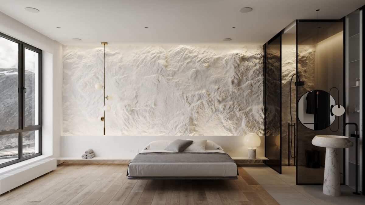 テレビ背面の壁に石材を用いると、空間のフォーカルポイントとして強い存在感を演出できます。とくに大理石やスレートなど表情のある石材は、間接照明と組み合わせることで素材感が際立つため人気です。