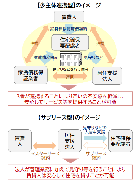 ・サブリース又は買取りによりセーフティネット専用住宅又は見守りなどを行う住宅(居住サポート住宅など)等を提供する居住支援法人等が事業を実施すること