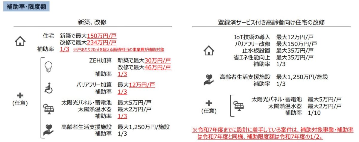- 新築で最大150万円/戸、改修で最大234万円/戸